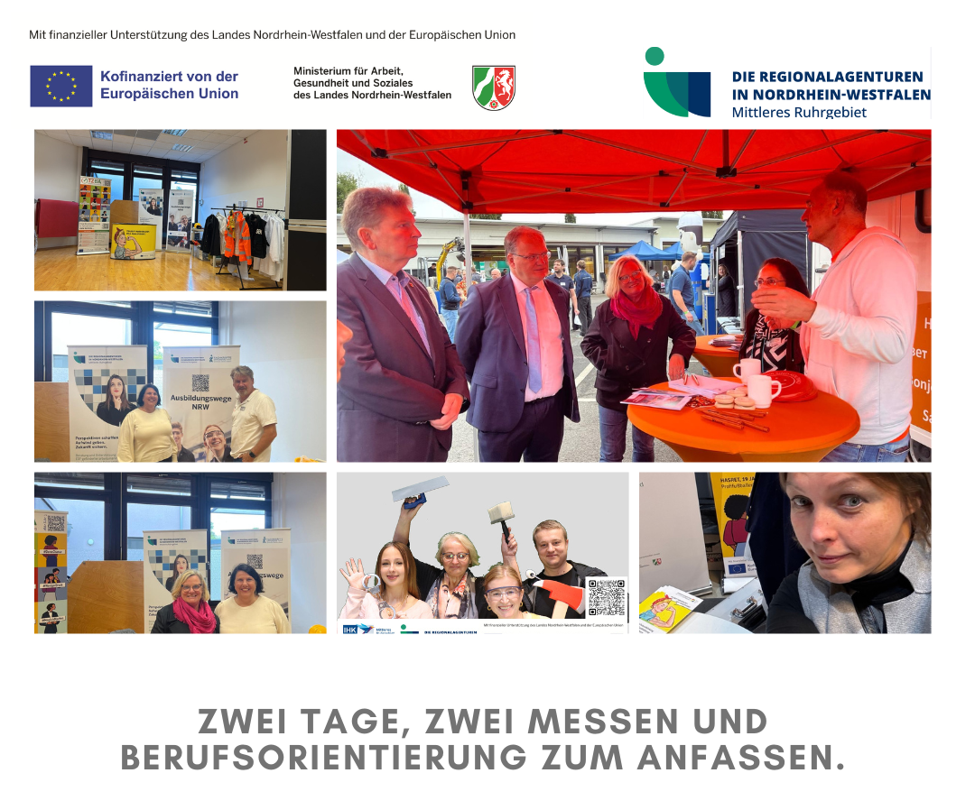 Auch in 2025 setzen wir uns dafür ein, das Thema Ausbildung in der Region zu stärken. Mit einer coolen Fotobox-Aktion während der BIM in Bochum am 10.09.2025 und am 11.09.2025 bei ZukunftEN in Witten haben wir für Spaß bei den Schülerinnen und Schülern gesorgt: Bei der Fotobox-Aktion konnten sich die Jugendlichen in Köch*innen, Installateur*innen, Bäcker*innen oder GaLaBauer*innen und sogar Astronaut:innen verwandeln – und viel Spaß mit witzigen Fotos haben.